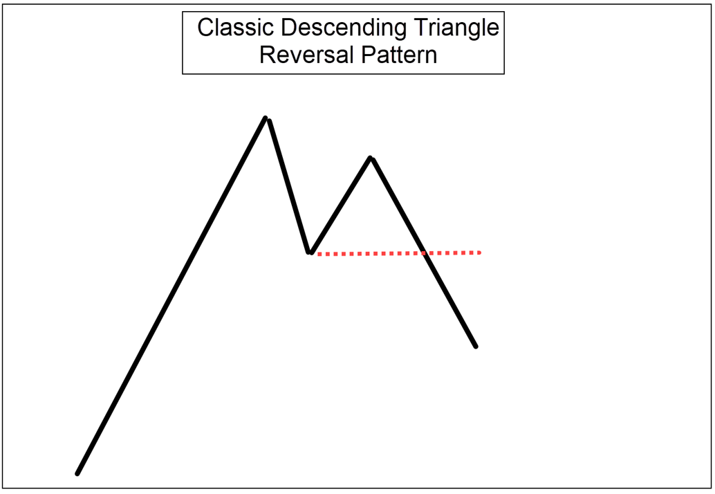 One common reversal that can happen is when we see a steep run up price, often at the beginning of the session if it is intraday, that will make a series of two lower highs before a sharp pullback. Chartists would refer to this as a “descending triangle” (see figure A).